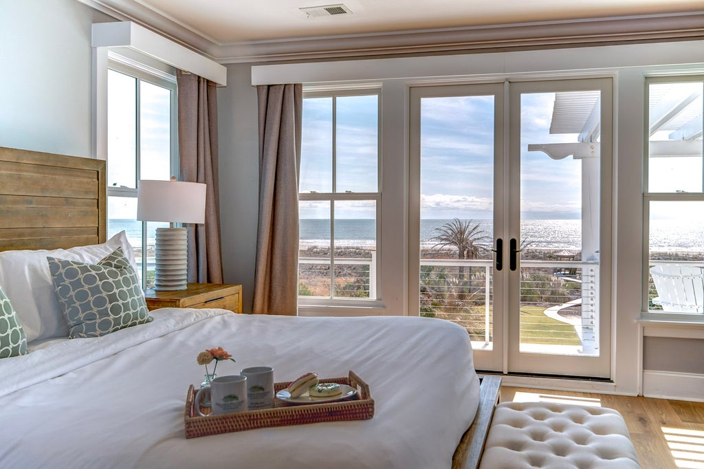 If you are planning a big, multi-generational family gathering, this 11-bedroom dwelling, just an hour outside of Charleston, should be at the top of your to-book list. It comfortably accommodates up to 34 guests and comes with an expansive outdoor pool, a fire pit, a glorious back patio, and your own private beach access. The chance to spend time with loved ones while surrounded by that view of the sea and palm trees? Priceless.