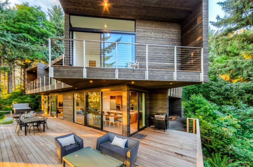 Who doesn’t love a serene getaway in the woods? This architectural gem is the ideal spot to be at with nature, thanks to spacious, open-air decks that stretch into the forest and splendid panoramas of Neahkahnie and Manzanita Beaches, both a short walk away. From the comfort of the outdoor hot tub, you might even see some of the area’s famous wildlife, including a variety of exotic birds, deer, and elks.