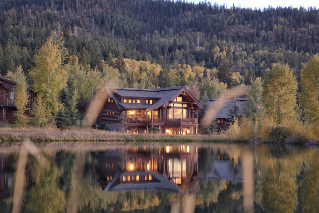 This five-bedroom log cabin in the Teton Valley takes the concept of the off-grid “cowboy-cation” to the next level. You get a front-row seat to the landscape of the Targhee National Forest, which includes lush meadows and dense canopies of fir and pine trees. The interiors are inviting and rustic, featuring wood-paneled walls, cathedral-ceiling windows, and cozy fireplaces. Lots of fun and relaxing times are to be had on the lovely porch, overlooking a pond.