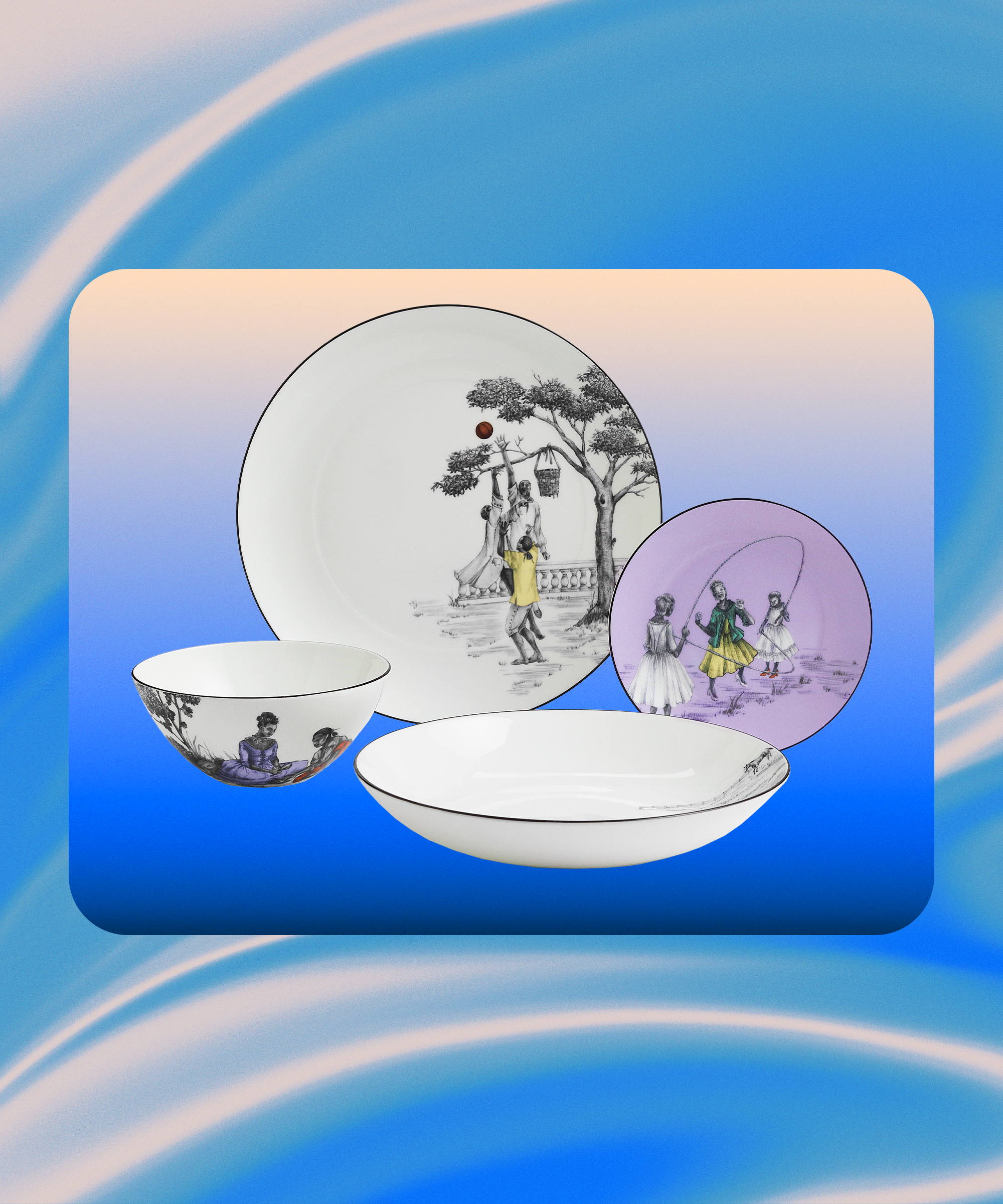 This imaginative set fuses art and function, featuring playful illustrations from the Harlem Toile de Jouy collection. Each plate and bowl tells a unique story through vibrant, fantastical designs. Guaranteed to spark conversation, it’s perfect for the host who believes a table setting should be as captivating as the company around it.