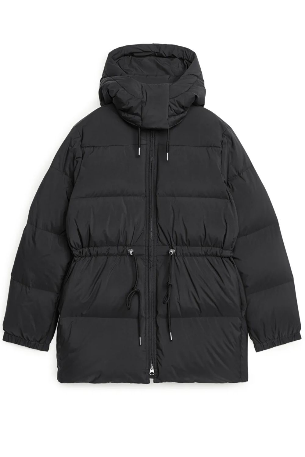 If you’re after a slightly more shapely silhouette, the waisted puffer coat is for you. Featuring the same warm down as the two jackets above, this coat is slightly shorter and has a visible drawstring at waist.