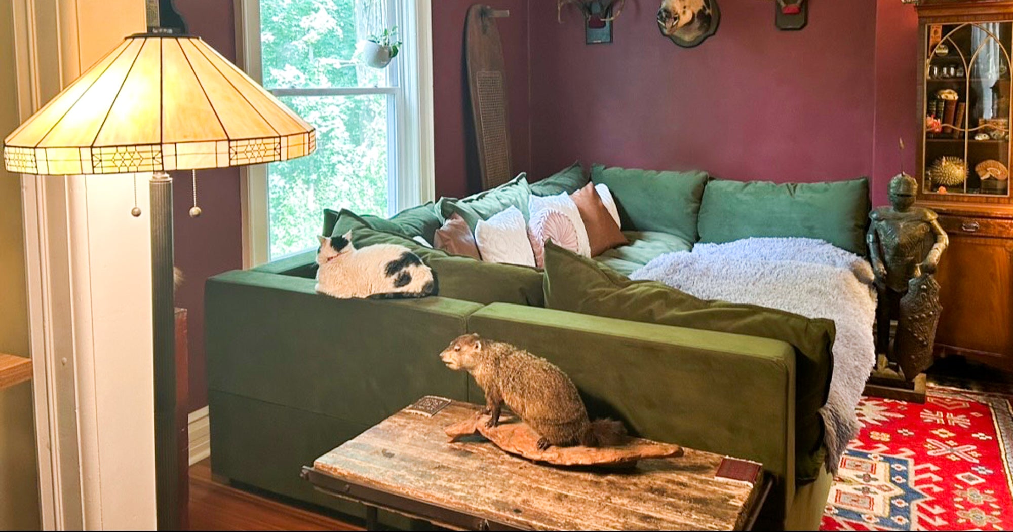 As such, I breathed a sigh of relief upon ordering my Albany Park sofa, which required little more than choosing the model and fabric (I chose olive velvet, one of five available velvet shades and nine total fabric choices, including tempting new white boucle and camel velvet options), and selecting between an ottoman with storage or one without (I opted out). Since I hadn’t seen the sofas in person before ordering, I was grateful that there was only one fill option — a hypoallergenic, fully vegan down alternative — ensuring that I wouldn’t find myself picking tiny, razor-sharp feathers out of my carpets, clothing, and hair until death’s sweet release. It took about a week for my order to ship, and I received the couch two weeks later.
