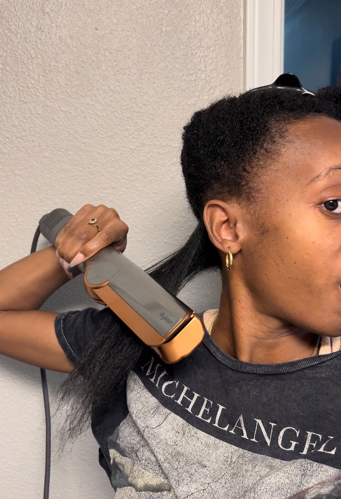Because this was my first Dyson tool, I had high expectations, but that just led to a steep letdown. At first, I was impressed by the sleekness and innovation behind the Airstrait design: I could tell Dyson tried to think of every little detail, like how it automatically turns off when not in use. Unfortunately, the overall effect it had on my hair wasn’t as striking. The highest temperature is 215 degrees, and the steam was so intense that it set my smoke alarm off. I realized, even though it stretched my hair straight in only one pass, that the brittleness it left behind wasn’t worth it. I also thought, Well, maybe it’ll save time. Wrong. I spent more time than I would during my regular process because I had to work in small sections since my roots are thicker than most other hair types. I won’t go as far as saying that Dyson isn’t inclusive, because not every product under a brand is going to be perfect for everyone — but as for the Airstrait, I don’t think my texture was heavily considered.