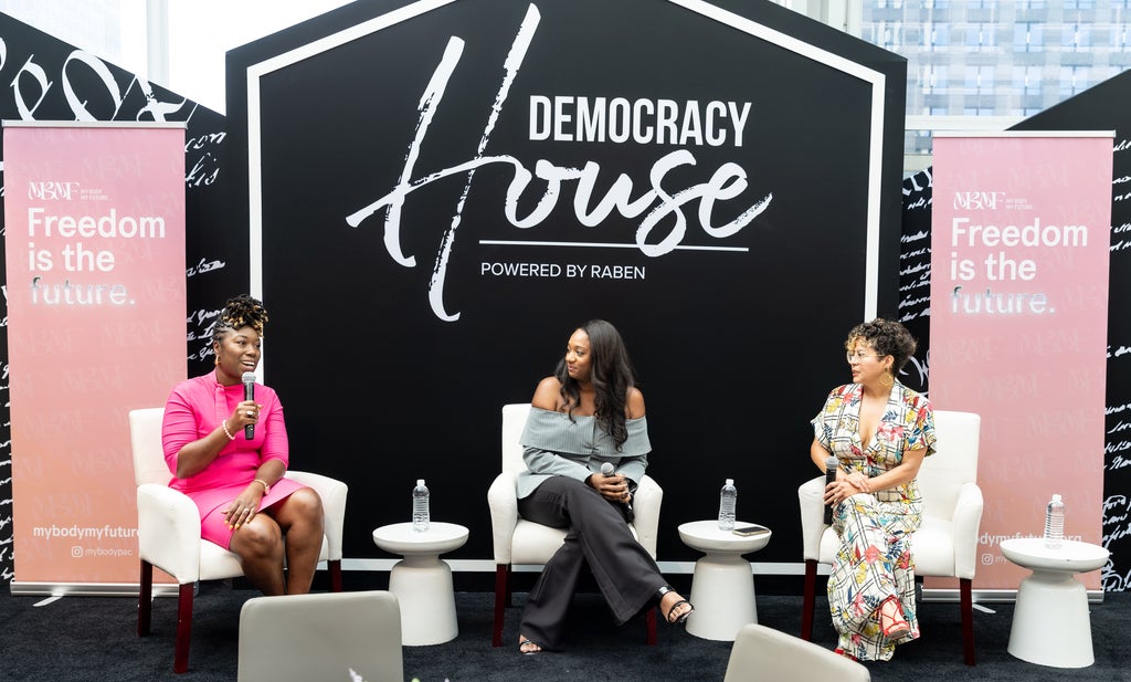 The first of My Body PAC’s events, all located at the DNC’s Democracy House, was a ‘Brunch for Choice’ panel event. Artist and activist Favianna Rodriguez moderated a conversation with Tennessee State Senators London Lamar and Charlane Oliver. An abortion ban called “Tennessee’s Life Protection Act” has restricted abortions statewide with only a handful of exceptions. Both Lamar and Oliver shared their abortion and miscarriage stories in a moment of vulnerability that gave way to a larger discussion on the fight for bodily autonomy. The panel provided a chance to dig into the impact and ramifications of legislation like this and just how urgent it is that we offer women and gender marginalized people better options than our current status quo.