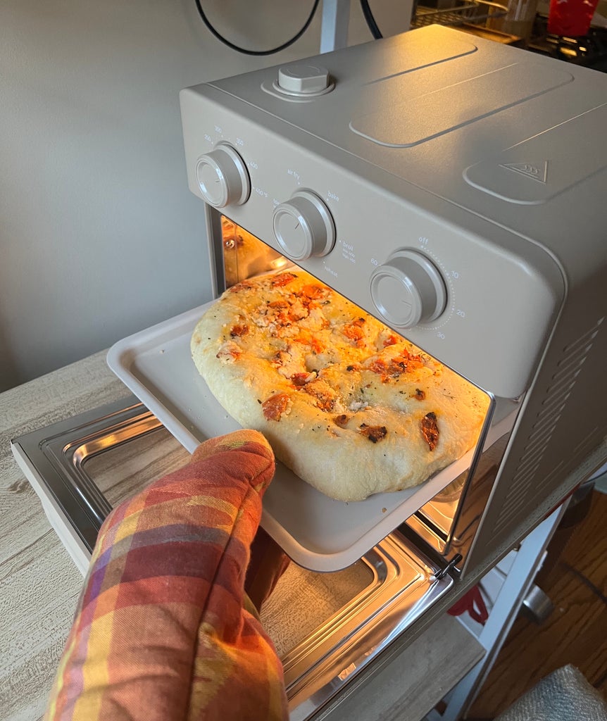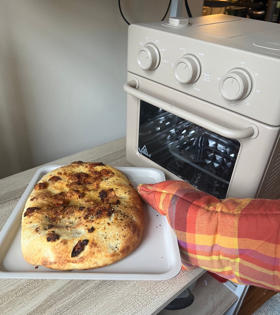 The oven dinged — I jumped as I scoured the manual. As someone who never blinked at the 1960s housewife aesthetic, this oven transformed me into Edna Turnblad quite quickly. Suddenly, I had an apron on, freshly baked bread in my oven mitt-adorned hand, and a nuclear family to serve it to (myself and my plants). Jokes aside, the bread came out piping hot, crispy, and simply delectable in just 10 minutes. Impressive!