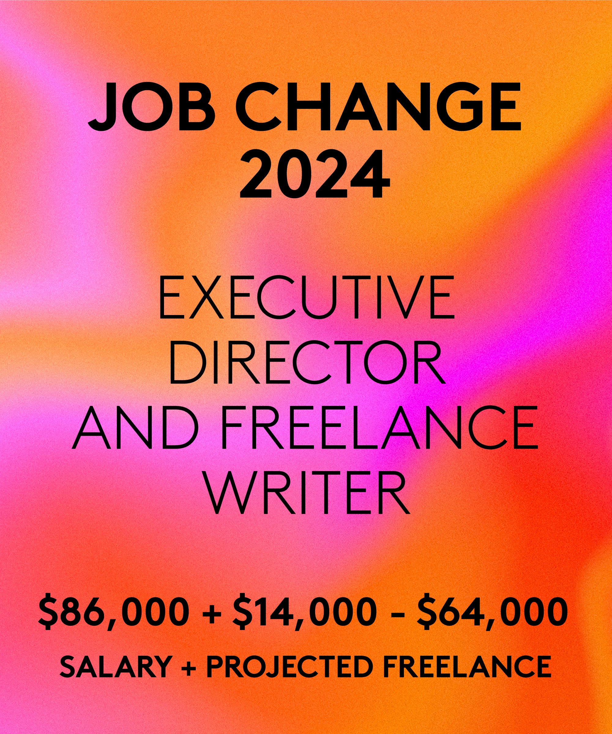 Current salary: $86,000 (salary), plus $14,000 to $64,000 (projected freelance income).
