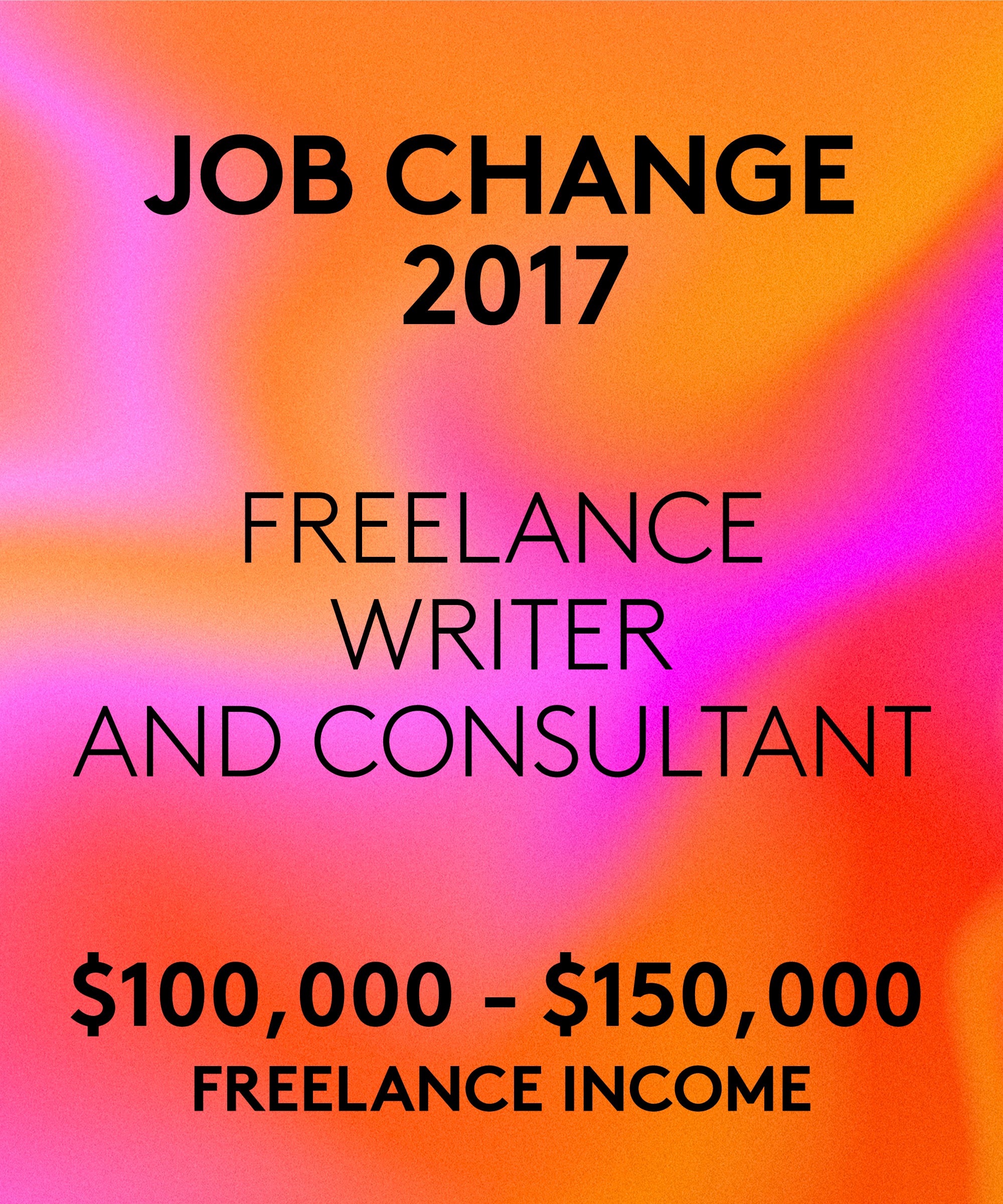 Biggest salary jump: From $67,000 to $100,000. This happened when I first went freelance from a salaried position. I used my experiences and a network developed over many years, so I was able to up my income on my own terms. And my work-life balance immediately improved.