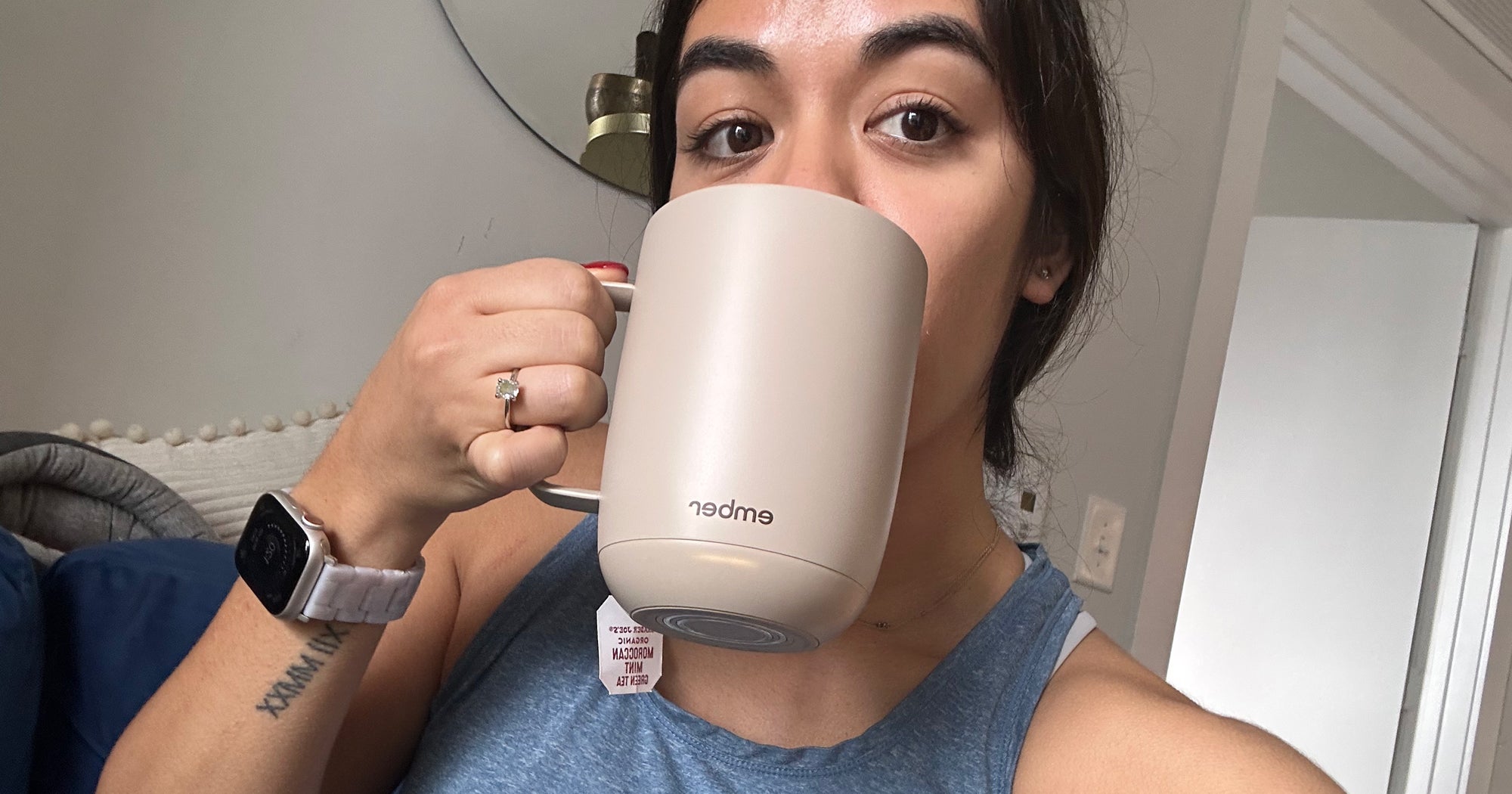 Unboxing the Ember Mug was like unpackaging an iPod. The box was super sleek, and perfectly nestled everything from the mug itself to the charging coaster. (The Sandstone colorway is extremely chic, and feels very Japandi, IMO.) It even came with a set of stickers, which for those who’ve ever unboxed any Apple products, felt very Apple. The instructions told me to start by charging up the mug and the charging coaster to full battery. While I let that do its thing, I downloaded the Ember app on my phone — this is how you can control the temperature of your beverage down to the exact degree. (You can also customize the color of your LED light on the mug, which is a fun, albeit not very useful feature.)