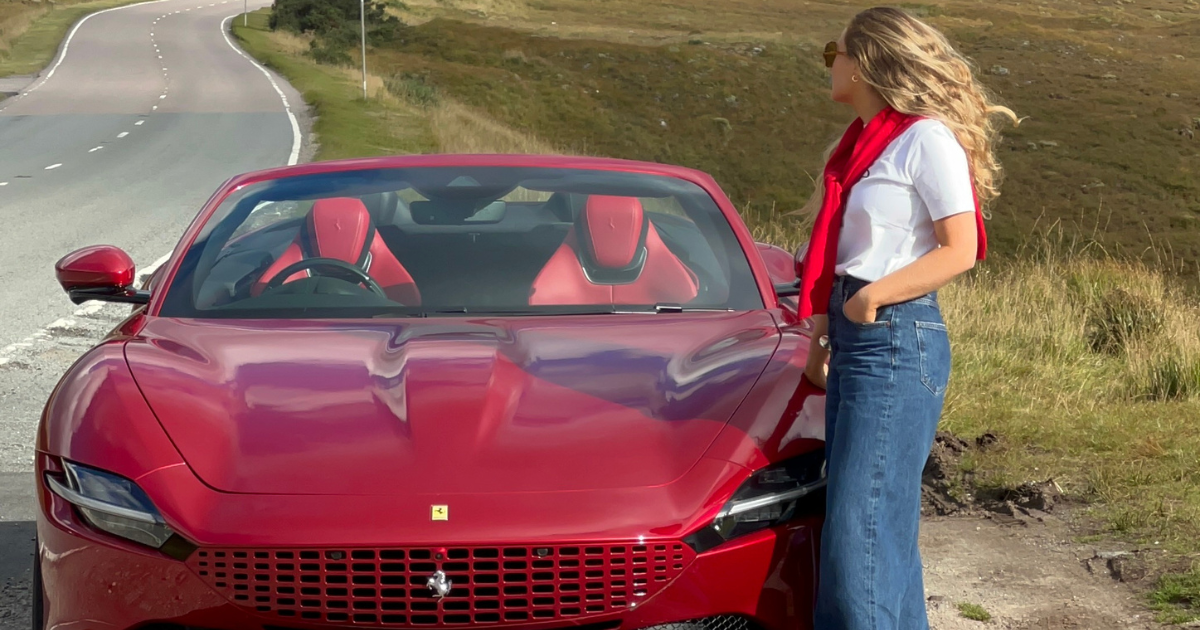 The location: the North Coast 500, a famous 516-mile circular route carved into the northern Highlands of Scotland. The set-up: roof down, sunglasses on, music blasting. The car: a classic, glossy red Ferrari Roma Spider—“Spider” simply meaning convertible in Ferrari terms—with rich red leather interiors, every mod-con imaginable, and an undeniably sleek silhouette that tackled (admittedly small) potholes and speed bumps far more gracefully than I expected. Essentially, a picture-perfect scene for my first experience behind the wheel of a £210,000-plus car. It’s easy to see why I was sold in an instant.