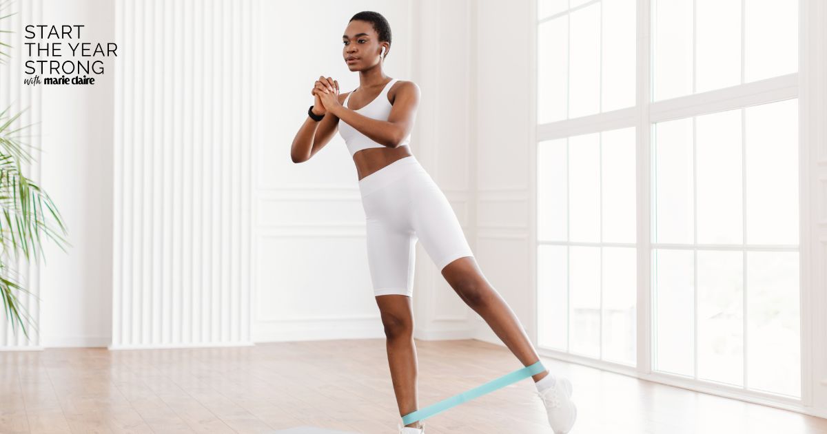 For the uninitiated, let’s start with the basics. A resistance band looks like a large, thick elastic band and works by adding resistance to your moves, forcing your muscles to work harder. To activate the glutes, you’ll usually have the band pulled taut across both legs, just above the knee.