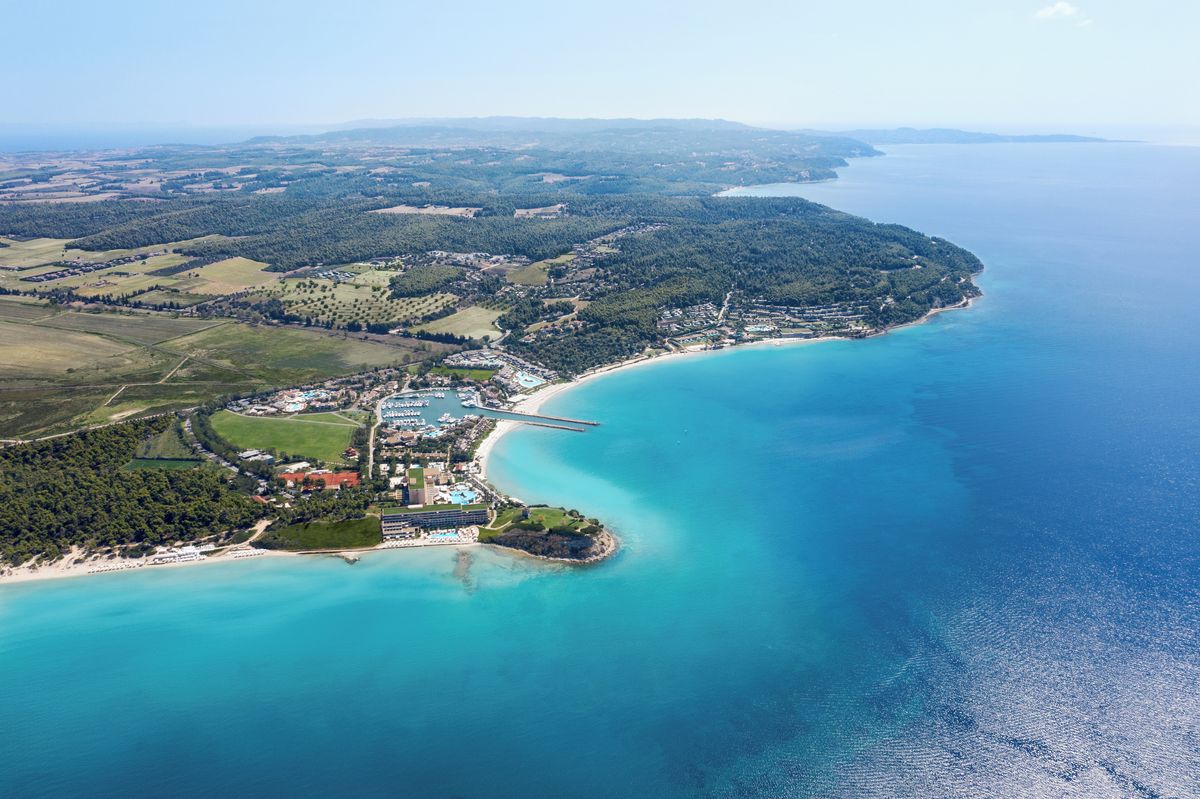 Everything you need is on-site — including fashion and jewellery boutiques for spur-of-the-moment treats — but if you do want to explore the region you’re not far from Afytos, a pretty hilltop village of stone houses and cobbled streets with spectacular views of the Toroneos Gulf.