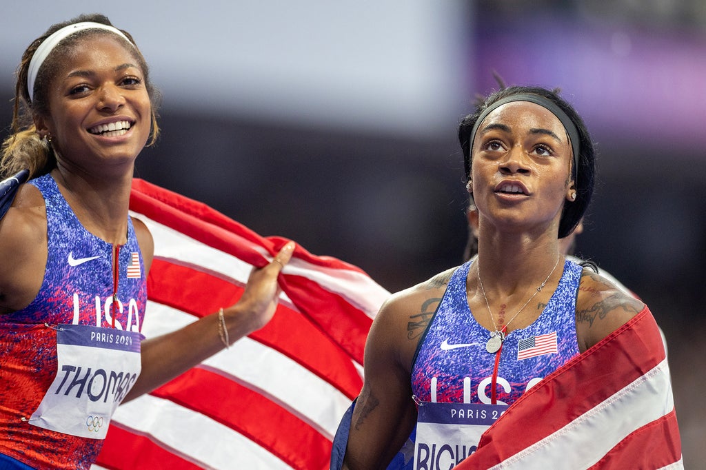 Every four years, at every Summer Olympic Games, iconic snapshots emerge that immortalize feats of greatness that wouldn’t seem humanly possible if we weren’t glued to our screens watching them play out in real time. Florence Griffith Joyner (Flo-Jo) with her arms in the air, celebrating her world records for the 100m and 200m sprints in Seoul in ‘88. That time Vince Carter dunked on a seven-footer on Team France in Sydney in 2000. Usain Bolt in Rio in ‘16, a meter ahead of his competitors, flashing a smile to the camera. Every photo of Simone Biles. And now, we have Sha’Carri Richardson in Paris in 2024, sprinting to the finish line of the 4x100m relay for Team USA looking over her right shoulder, staring victory in the face.