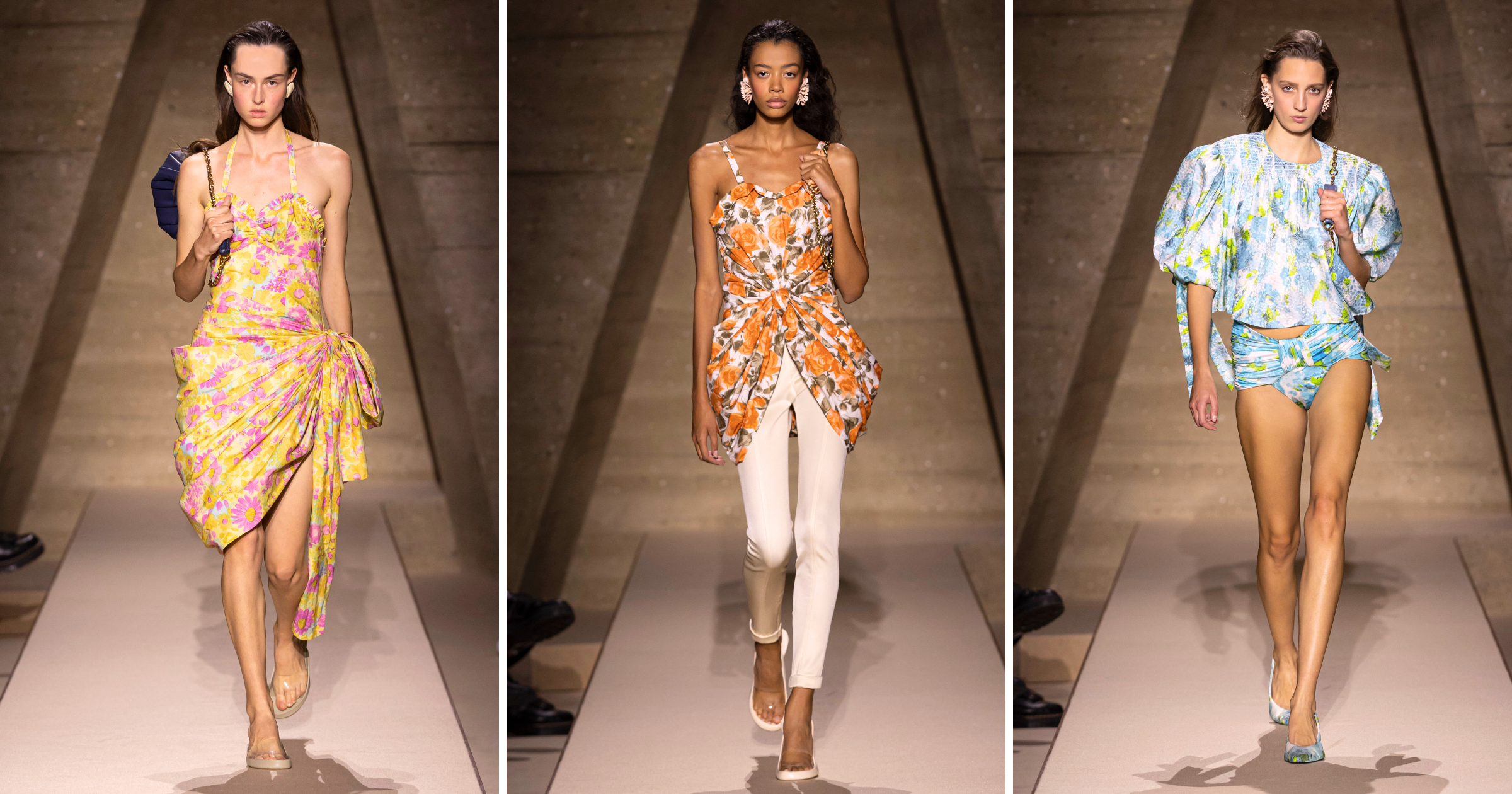 Enter: the 1980s. Complete with vibrant florals in every iteration—pink rose-printed mini dresses, purple smock tops and blue floral micro shorts aplenty—the opening looks could have been plucked straight from your grandmother’s photo album. Only a perm could have added more retro charm, and the styling shift has, unsurprisingly, caught the attention of every fashion devotee in Paris.