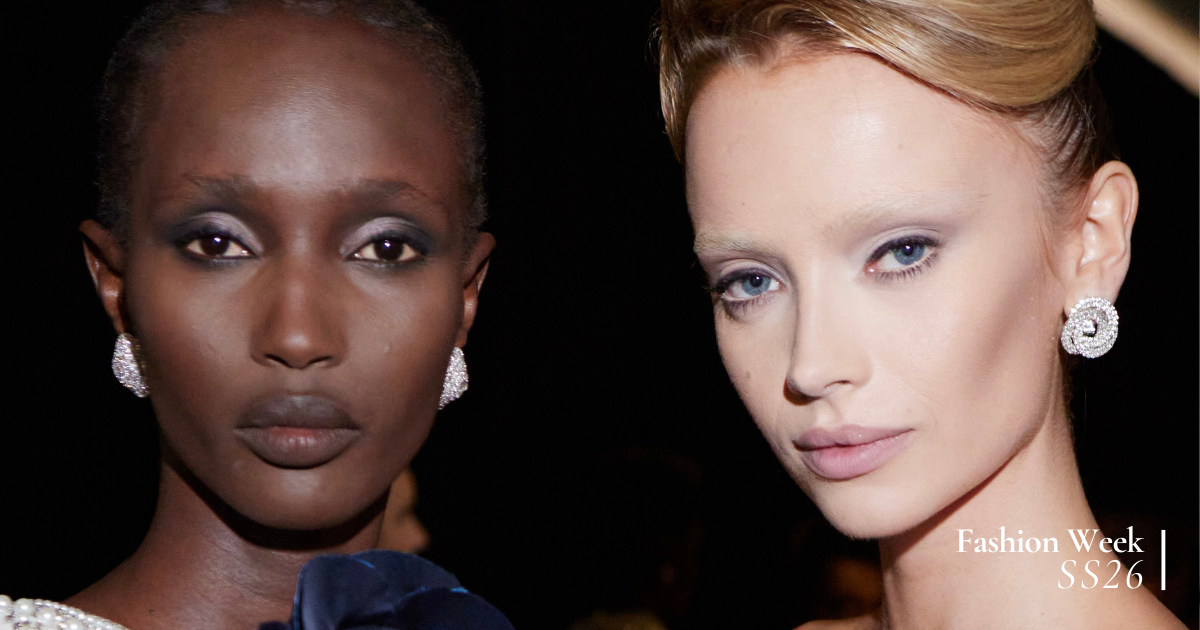 For SS26, mess and (literal) muck are in. At Dilara Findikoğlu, make-up artist Yadim Carranza adorned models’ faces with patches of mud to represent breaking free from gender norms. It looked like they’d rolled around in dirt, in the best possible way.