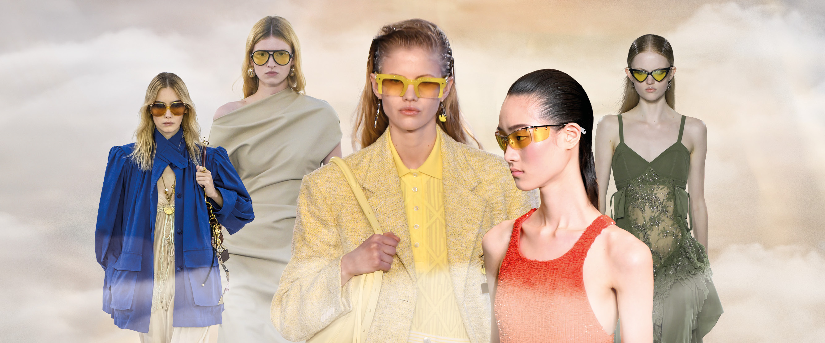 The yellow hued sunnies were seen in various iterations: from 70s-inspired aviators to classic cat-eyes and even bold asymmetric frames—perfect for maximalists.